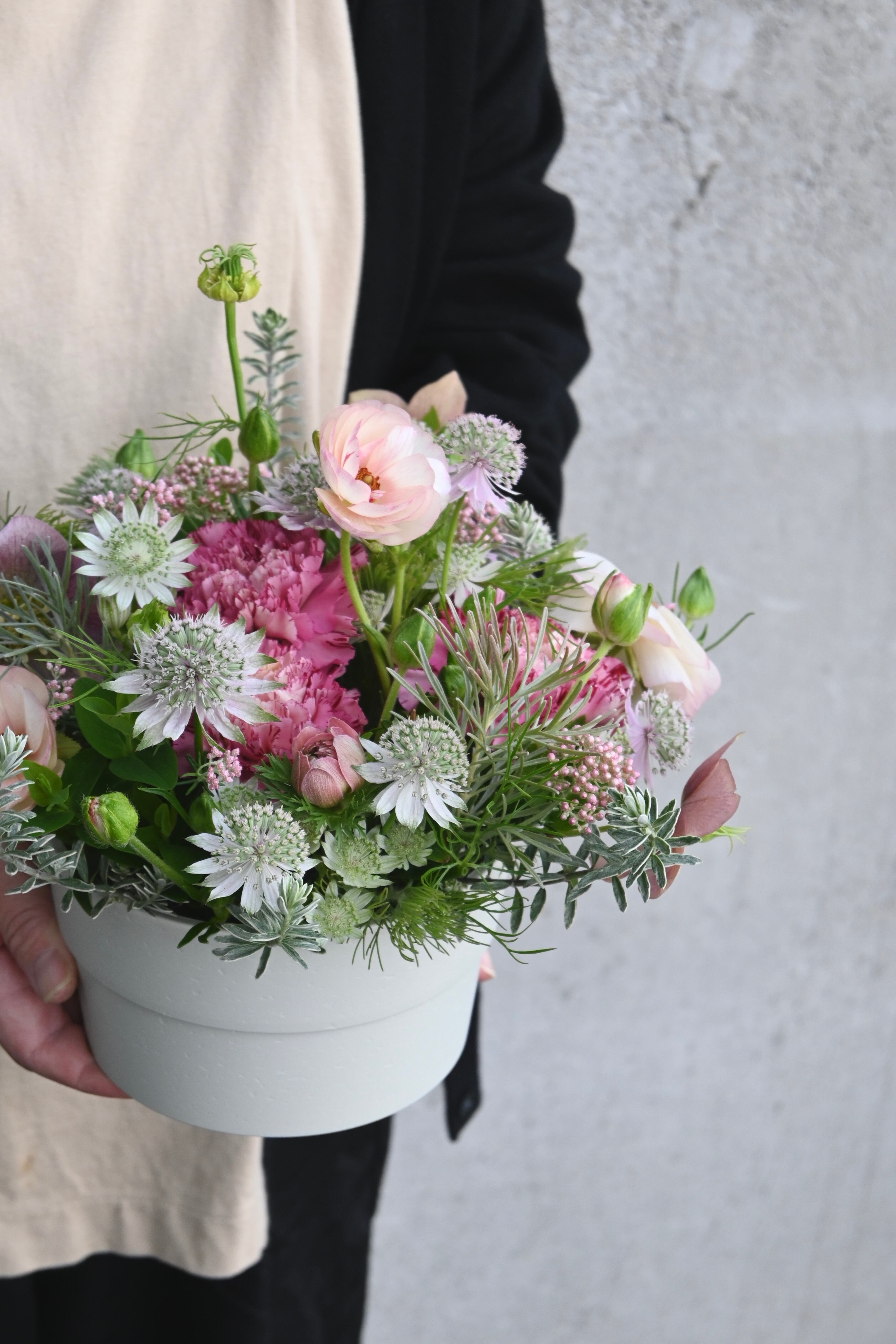 その時々の旬の花材で作るアレンジメント。